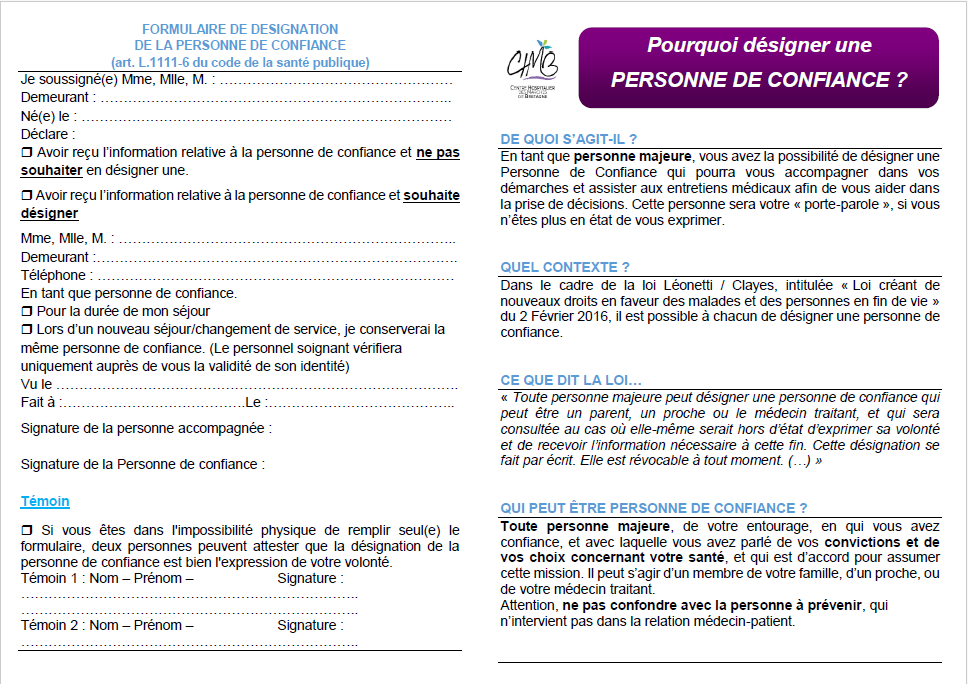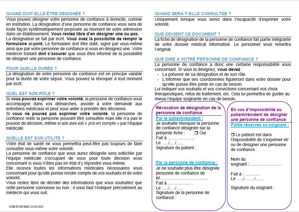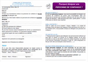 - s’assurer que vous êtes informé de la possibilité de désigner une personne de confiance,