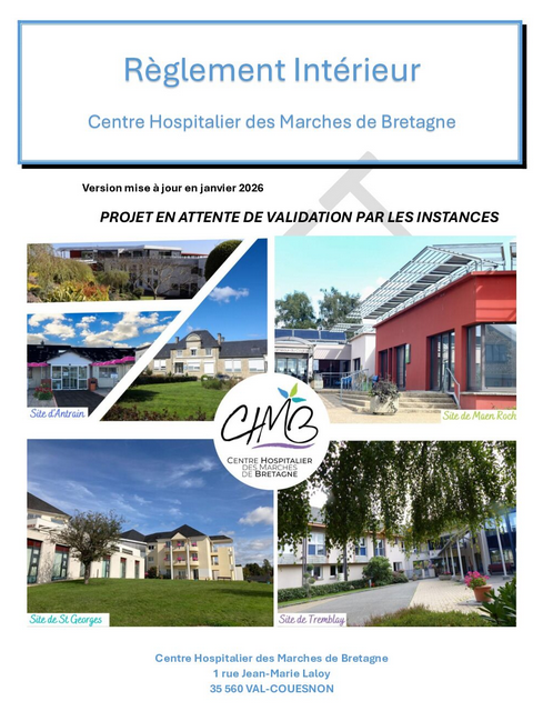 Le règlement intérieur a été révisé en 2026. Il s’impose à tous les professionnels et aux usagers ainsi qu’à ceux qui les accompagnent, aux visiteurs, aux fournisseurs mais aussi de façon plus large à toute personne amenée à fréquenter les installations ou locaux du CHMB.